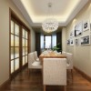 135平米的三居室,采用现代简约的装修风格,简约风就是要展现出一种亮丽、清纯的感觉,在本案例的设计当中,大量的留白处理,营造一个既时尚又舒适的环境,例如客厅的装饰布置,采用平顶式的石膏板吊顶,背景色彩以白色为主,搭配上一盏亮丽的水晶吊灯,让空间的采光更加的柔和明亮,实木铺设的地板,鲜明的色彩反差不仅起到一个点缀空间的效果,而且在体验感上也有着良好的感觉,个性的电视背景墙搭配上一个搁架,在装饰空间的同时,也能适当的增加空间的收纳功能,反观沙发背景墙的造型,三幅壁画的悬挂,让空间展现出一种艺术的氛围,而且从侧面也烘托出业主独有的气质与涵养。