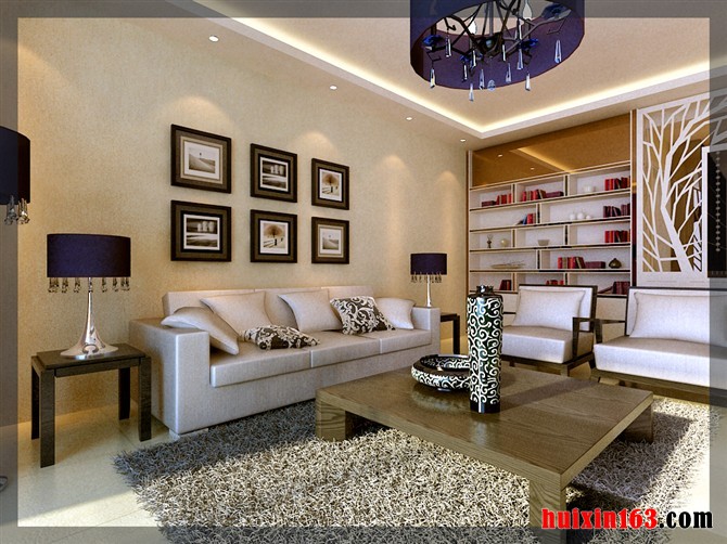客厅的布置主要反映出了设计的现代感和自然田园的气息。在电视背景墙的顶端有一条狭长的深灰色的镜面,紧挨着是一排射灯,在向上就是环绕房间一周的灯带,光线投射在镜面上,映射出非常奇妙的光影效果。在客厅的电视背景墙上采用深色背景浅色花纹的墙纸装饰,在两边是层次感非常好的石膏板线条,搭配上两颗小树的造型,在旁边放一棵真的绿植,营造出清新自然的氛围。