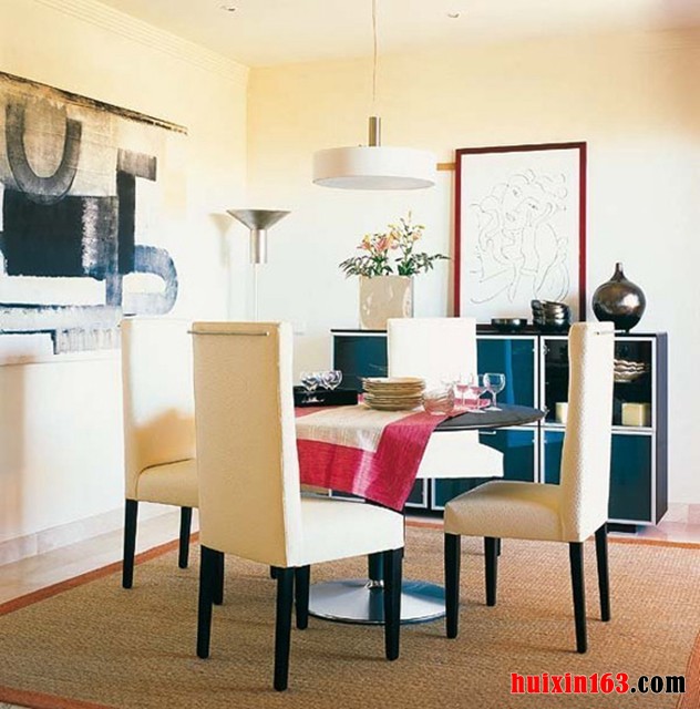 本案家居设计,以活泼鲜明的丰富彩色来营造时尚的现代感。客厅内,热情的橙色沙发椅与浅米色墙面及乳白色布艺沙发形成鲜明对比,色彩活泼突出,在客厅内显得尤为显眼,是现代简约风格的体现,也是个性时尚的表现。不锈钢结构框架钢化玻璃茶几,现代感强,简洁实用,与木质边几、布艺沙发搭配,色彩冷暖兼具,使得客厅尽显时尚前卫之余也丰富层次感与立体感。客厅与餐厅的设计在颜色与材料的选择上有异曲同工之妙,从而体现空间的连贯性。 更多»推荐小区效果图